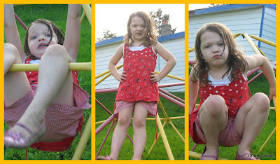 She dug, and we chatted. She found a bone (imaginative language for a hunk of rock), and explored it, then drifted over to the climbing dome. Once again, I was amazed at her grace and confidence in her body. At 40, I've never been anywhere near as physically assured.