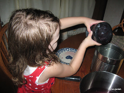In all, we stayed out only about half an hour. Back inside, Annalise used my mortar and pestle to make "blackberry jelly". I got back into cleaning nearby, where we could talk, with renewed energy and a happy smile.